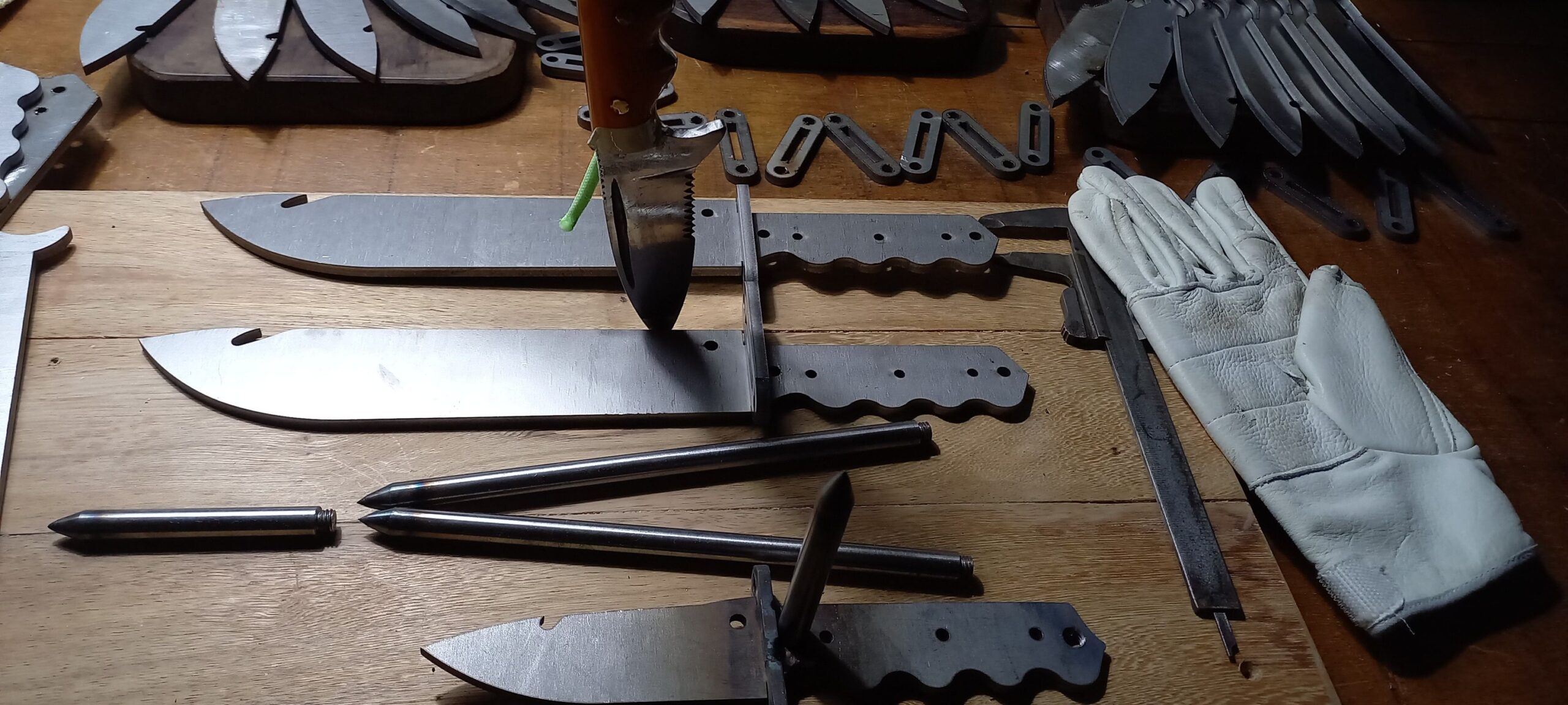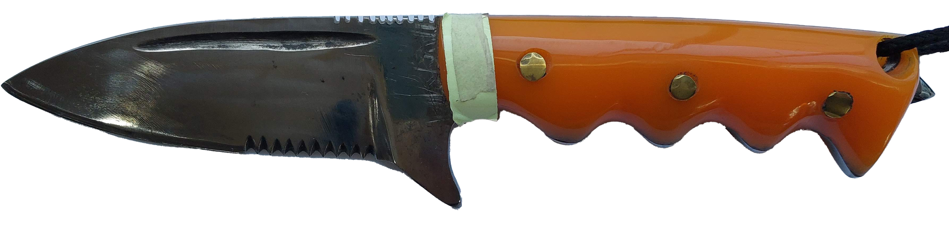 – Guarda dedos com dois orifícios para fixar paracord, cordelete, zagaia/lança e enxada,