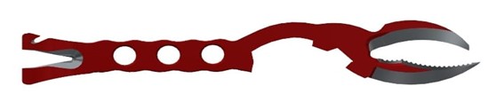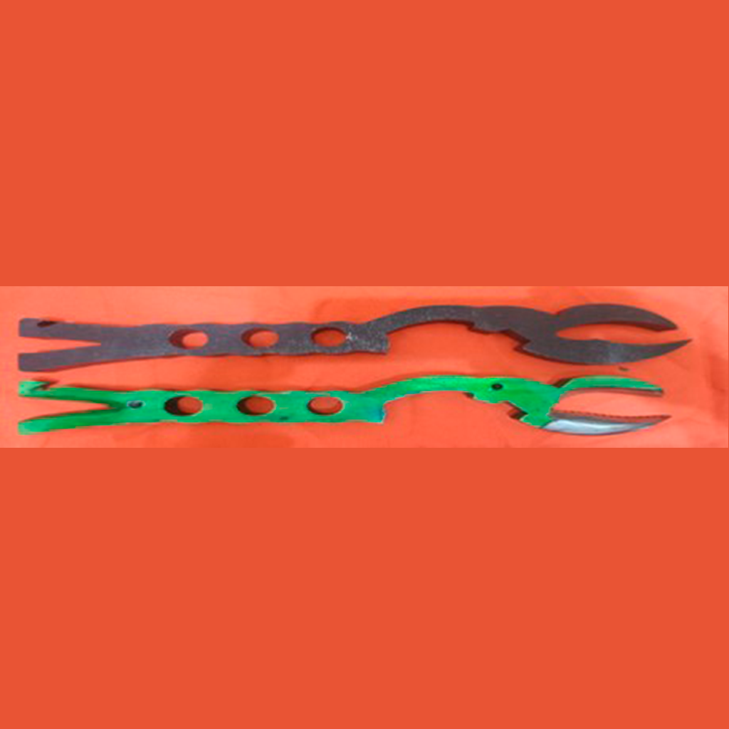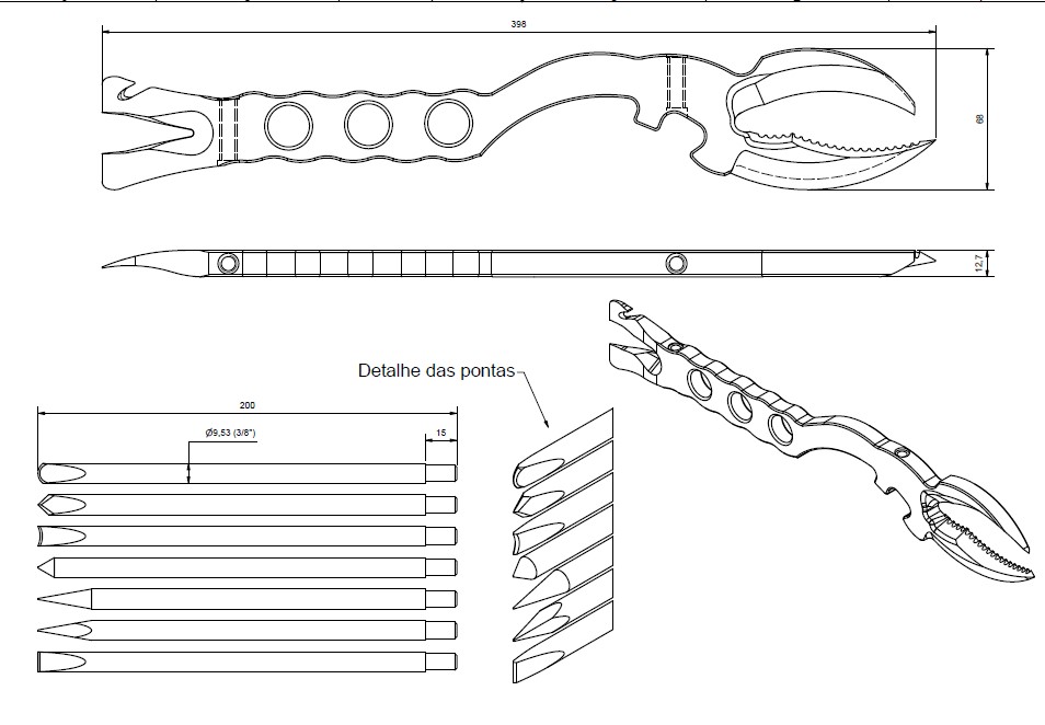 Com porte ergonomicamente desenhado por 1º Sgt° Bombeiro Militar Salem, visto que, ela tem um excelente porte, peso leve, dimensões proporcionais para as operações em pequenos espaços, com sistemas de alavanca tipo o pé de cabra, pequenos cortes, extrator de parafuso, cadeados, pregos, arames, pequenos vergalhões, arrombamentos diversos e entradas e saídas forçadas (portas, janelas, portões, grades, telas, telhados, paredes com qualquer tipo de estrutura). Na garra tipo lagosta ela tem sua parte de ponta aguda, fura, rasga latarias automotivas bem como, abrir acessos em janelas de veículos furando pneus para estabilização veicular, abertura porta-malas, abre acesso para máquina de vidro e fechaduras, tampa de motor, acesso a tanque combustíveis, funcionando como um cutelo, uma pequena machadinha e martelo. Na garra possui na parte inferior (externamente 100mm de lâmina) uma serra na parte interna, e parte superior uma lâmina de 80mm afiada funcionando como um abridor de latas de médio porte. Possui os orifícios de 20 mm proporcionando vários tipos de amarrações em emergências podendo fixar cabos de salvamento por uma rápida descida em quaisquer situações. Uma chave de mangueira de 1.1/2 e 2.1/2 polegadas. Possui 04 (quatro) orifícios de 8 mm com rosca que permitirá a fixação de ponteiros/talhadeiras.